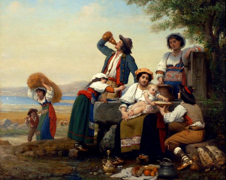 E per tornare al ciociaro televisivo: per motivi di riservatezza non possiamo mostrare l’immagine  del personaggio comunque visibile nel sito RAI alla data più sopra indicata ma si immagini un cosiddetto ‘lazzarone’ napoletano o un uomo di fatica in generale, con la camicia rossa a quadrati e il fazzoletto attorno al collo e un  cappellino in testa, senza citare il modello di barba piuttosto arduo a rinvenire in un ciociaro dell’epoca quale documentato nelle migliaia di documenti pittorici esistenti.