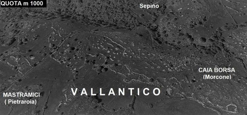 Tutta la zona, cosi come il torrente che l’attraversa, è nota col nome di Vallantico (da vallum: palizzata, baluardo, bastione e, in senso figurato, difesa, riparo, barriera protettiva, e antiquum: passato, vecchio, di un tempo)…