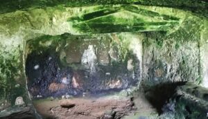 Nelle vicinanze si trovano diversi gruppi di tombe etrusche a camera, la zona limitrofa è conosciuta col nome di Grotte del Mereo, si può quindi supporre che la caverna dove si svolgevano i culti mitraici fosse in realtà una tomba riadattata ad uso sacro.