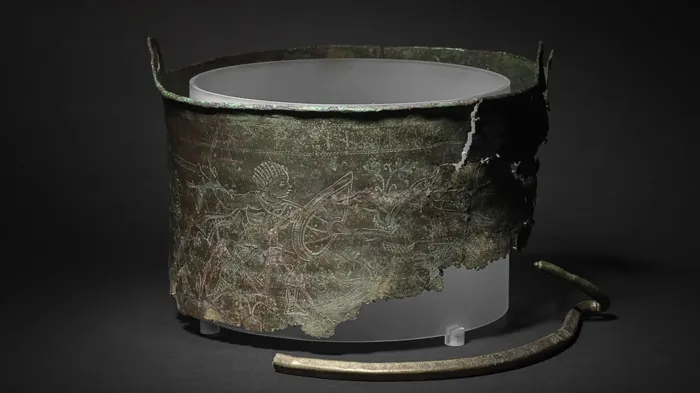 L’oggetto è un recipiente in lega di rame, ornato da scene di caccia sicuramente riguardanti l’Africa settentrionale. Le lettere individuate denunciano la sua origine turca e probabilmente esso proveniva da Antiochia; questa è, almeno, l’interpretazione dovuta al comunicato stampa del National Trust. Questo oggetto sembra aprire uno spiraglio nelle conoscenze in merito ai rapporti dell’Inghilterra con il mondo medio orientale sia culturali sia commerciali.