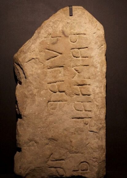 Il cippo in arenaria (alt. 116 cm, largh. 60 cm, spesss. 16 cm) risulta inscritto in alfabeto settentrionale ed è databile al II secolo a.C.