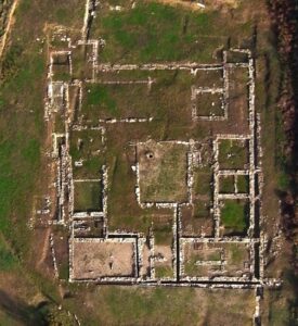 L’abitato, che si caratterizzava per l’impianto ortogonale, aveva strade realizzate con piccole pietre e frammenti fittili compattati senza uso di leganti sulle quali si affacciavano edifici delimitati da canali drenanti.