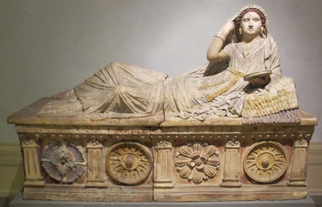 Si tratta di un monumentale sarcofago in terracotta databile al 150 – 130 a.C. di produzione chiusina (alt. cm 110; lunghezza cm 164; profondità cm 54) con ricca policromia. Per esigenze di lavorazione fu realizzato in cinque parti poi assemblate tra di loro.