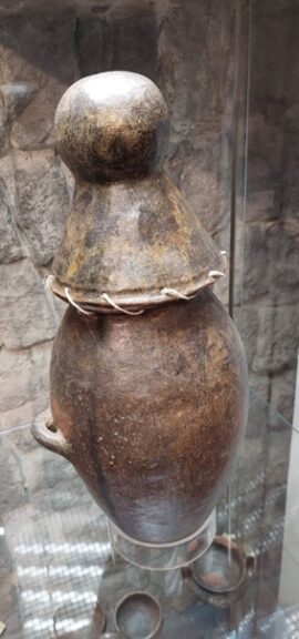 Sul collo di un cinerario vulcente, privo di corredo, sono state realizzate due grosse bugne accoppiate interpretate come la raffigurazione di un seno femminile (Delpino 1977).