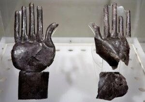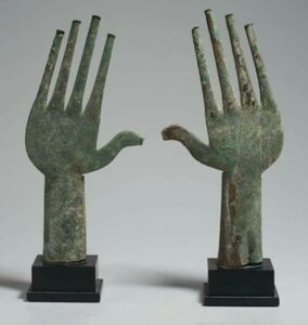 Di seguito le immagini di cinerari vulcenti con coperchio a palla, delle mani provenienti dalla Tomba delle Mani d’Argento, delle mani ritrovate nella Tomba del Carro e della ricostruzione della Tomba del Carro effettuata nel Museo Nazionale Etrusco di Villa Giulia.