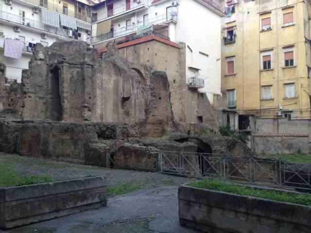Ricostruiamone le vicende. Il complesso archeologico di Carminiello ai Mannesi (amanuensi), che trovasi quasi a ridosso dell’area del Duomo di Napoli e, precisamente, dalle parti del popoloso quartiere di Forcella, fu messo in luce dai bombardamenti del 1943 che ne distrussero, oltre agli edifici adiacenti, la soprastante chiesa di Santa Maria del Carmine ai Mannesi, dal cui crollo riemersero le antiche vestigia di epoca romana.