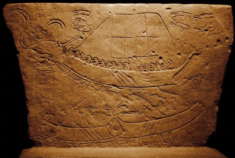 La grande nave che appare nella stele è Argo, la galea greca degli Argonauti, spinta dalla forza delle braccia di rematori disposti su due file o, grazie alla presenza di alberi e vele, da quella del vento. Si è provato ad analizzarla sotto l’aspetto iconografico, ma forse non si sono notati alcuni particolari che la rendono ben riconoscibile.